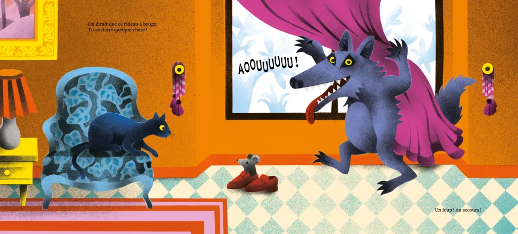 Tous les villageois font preuve de ruse ou s’infligent bien des détours pour contourner la sordide maison de Monsieur Loup… Car en plus d’abriter un féroce locataire, celle-ci a la réputation d’être maudite ! Aussi, lorsque le facteur annonce à la population qu’il doit distribuer une lettre à Monsieur Loup, tous tentent de le dissuader de frapper à la porte de la terrible masure. Mais conscience professionnelle oblige, le courageux facteur décide tout de même d’aller jusqu’au bout de sa mission, suivi par tous les villageois aussi curieux que terrorisés… La porte s’ouvre dans un grincement et chacun retient son souffle… Jusqu’au moment où apparaît un surprenant et bien inoffensif Monsieur Loup ! Ce joyeux méli mélo de contes où l’on croise les trois petits cochons, le petit Chaperon rouge (doublée du chat botté !), la chèvre et ses sept chevreaux ou encore Pierre et le loup, mêle avec un humour revigorant tous les ingrédients de la littérature jeunesse sur la peur du loup. Un album fort joliment illustré qui distille une saine et bien jolie morale sur la crainte, bien souvent infondée, de l’autre et de l’inconnu ! A partir de 3 ans.