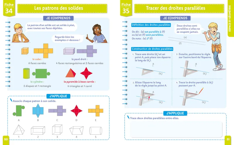 C’est de manière bien ludique que ces cahiers permettront à vos enfants de consolider leurs acquis ! Ils se composent de fiches présentant des leçons : nombres et calculs, grandeurs et mesures, espace et géométrie, grammaire, conjugaison, orthographe et vocabulaire. Énoncées de façon claire et illustrées de schémas et de visuels pour en faciliter la compréhension, celles-ci sont augmentées d’astuces et de conseils pour accompagner l’enfant dans ses révisions. Chaque leçon est ensuite suivie d’exercices d’application et des exercices d’approfondissement (« je fais tout seul ») sont également proposés pour mettre en pratique les notions étudiées sur les deux ou trois leçons précédentes. Ces cahiers, conçus par des enseignants, sont décidément parfaits pour réviser les bases du français et des maths, tout en s’amusant !