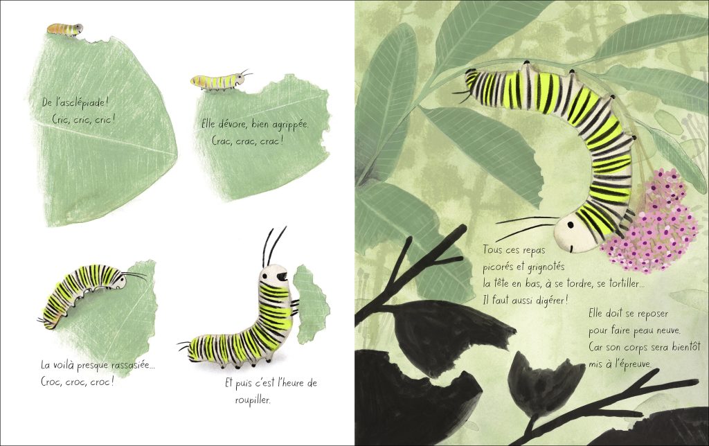 Cet album célèbre en beauté le papillon Monarque sous de somptueuses illustrations accompagnées de textes informatifs (qui ne manquent pas d’humour !) sur toutes les étapes de son développement. Un magnifique documentaire pour informer nos p’tits loups, pour les émerveiller et pour les alerter sur l’urgence de protéger cette magnifique espèce, hélas, de plus en plus menacée… Superbe à tous points de vue ! A partir de 6 ans.