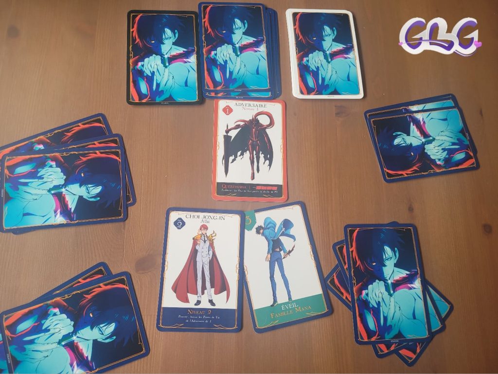 Retrouvez le héros du webtoon Solo Leveling avec ce jeu de cartes qui vous promet d’âpres combats contre ses adversaires ! Il se compose de 9 cartes « adversaire », de 30 cartes « action » (se déclinant en 10 cartes « allié » et en 20 cartes « éveil »), de 10 cartes « victoire » et d’une carte « liste des attaques ». On sépare les cartes en trois tas : « adversaire », « action » et « victoire », puis on pioche au hasard une carte « adversaire » que l’on place au centre du jeu. On pioche ensuite deux cartes « action » que l’on place en-dessous de la carte « adversaire ». Chaque joueur pioche ensuite trois cartes dans le tas des cartes « action » et les garde en main sans les montrer aux autres joueurs. Le but du jeu ? Battre l’adversaire posé sur la table en lui infligeant le plus de dégâts possibles ! Pour cela, on doit associer les cartes « éveil » que l’on a en main avec les deux qui sont placées au centre du jeu. Les cartes « allié », quant à elles, permettent de bénéficier de bonus et d’avantages pour améliorer les dégâts infligés ! A vous de jouer pour battre à plate couture Beast, Queresha et Antarès avec l’aide de vos précieux alliés Cha Hae-In, Yoo Jinho, Woo Jinchul, Choi Jong-In et Go Gunhee ! Le premier joueur qui remporte quatre cartes « victoire » gagnera la partie !