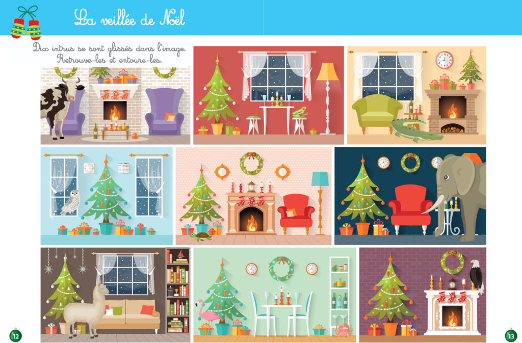 Voilà LE cahier parfait pour attendre le Père Noël et pour faire perdurer la magie de Noël ! Au fil de ses pages, vos enfants pourront s’amuser avec tout plein de petits jeux (dessin et coloriage, labyrinthes, suites logiques, points à relier, jeux d’ombres, jeux des différences, puzzles, tangrams, sudokus, jeux de nombres, chasse aux mots…) mais aussi s’exercer au bricolage grâce aux ateliers proposés qu’ils pourront réaliser avec le matériel à découper fourni en fin d’ouvrage (calendrier de l’Avent, bac sensoriel, boîte à découvertes, sapin de Noël miniature, couronne étoilée, cartes de voeux, flocons en papier, carte pop-up, guirlandes, boules à neige…). Ce chouette cahier propose également de délicieuses recettes sucrées qui, après avoir été cuisinées avec amour, pourront être déposées près du sapin, tout près du traditionnel verre de lait destiné au courageux et généreux Père Noël ! Un cahier aussi ludique que pédagogique qui fera rêver vos p’tits loups tout en stimulant leur motricité et leur esprit logique ! A partir de 3 ans.